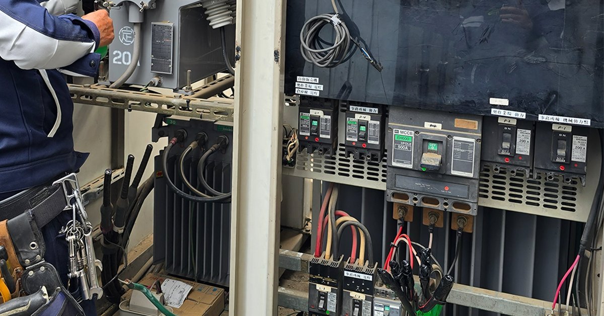 LED一斉交換、高圧キュービクル更新、業務用エアコンの一括交換など、工場・倉庫の電気設備を「まるごと」最新化。